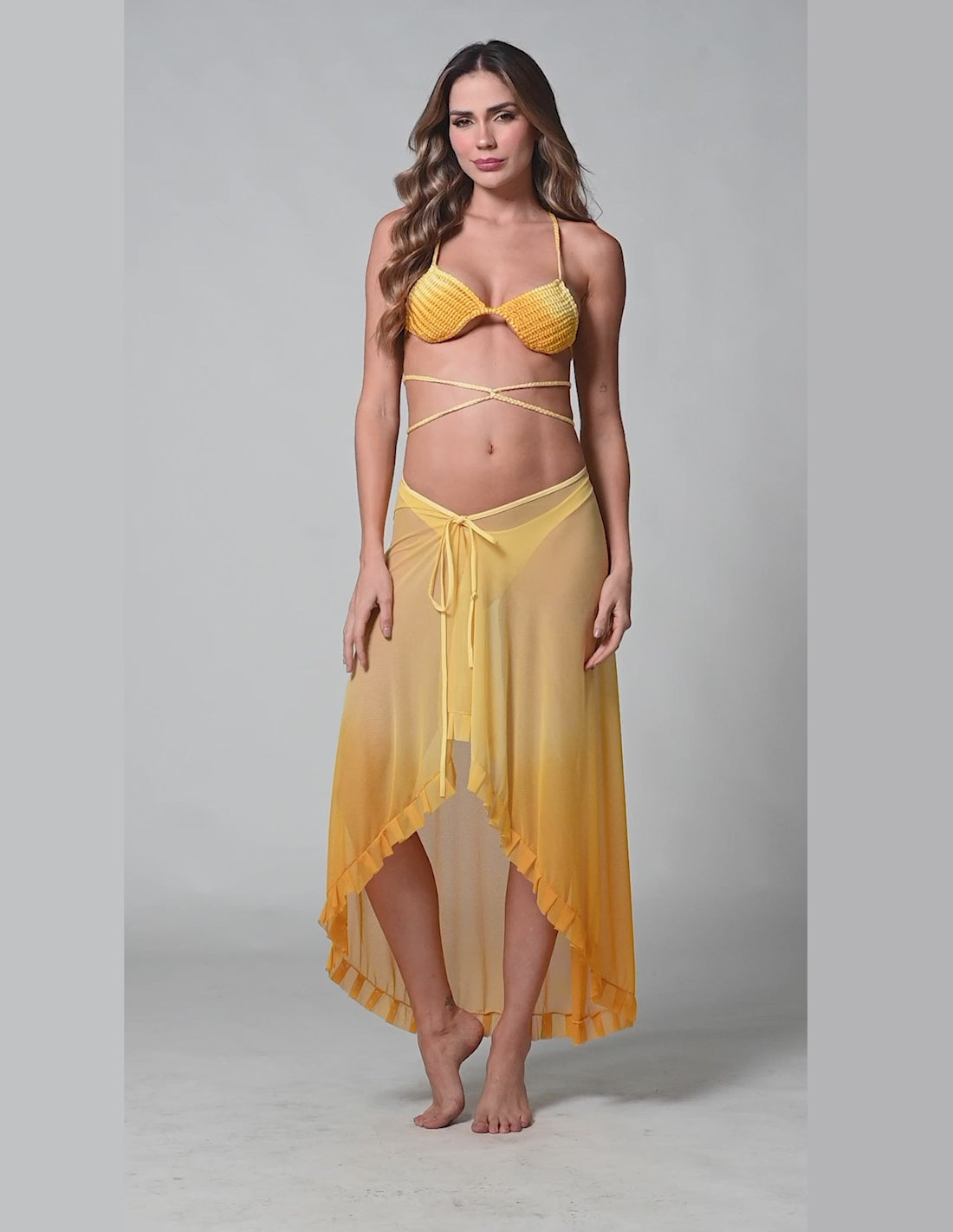 El pareo, ligero y versátil, es el complemento perfecto para completar tu conjunto. Su material de secado rápido te permite usarlo de múltiples formas: en la cintura, cruzado, como strapless o sobre los hombros, adaptándose a tu estilo y a cada momento bajo el sol.