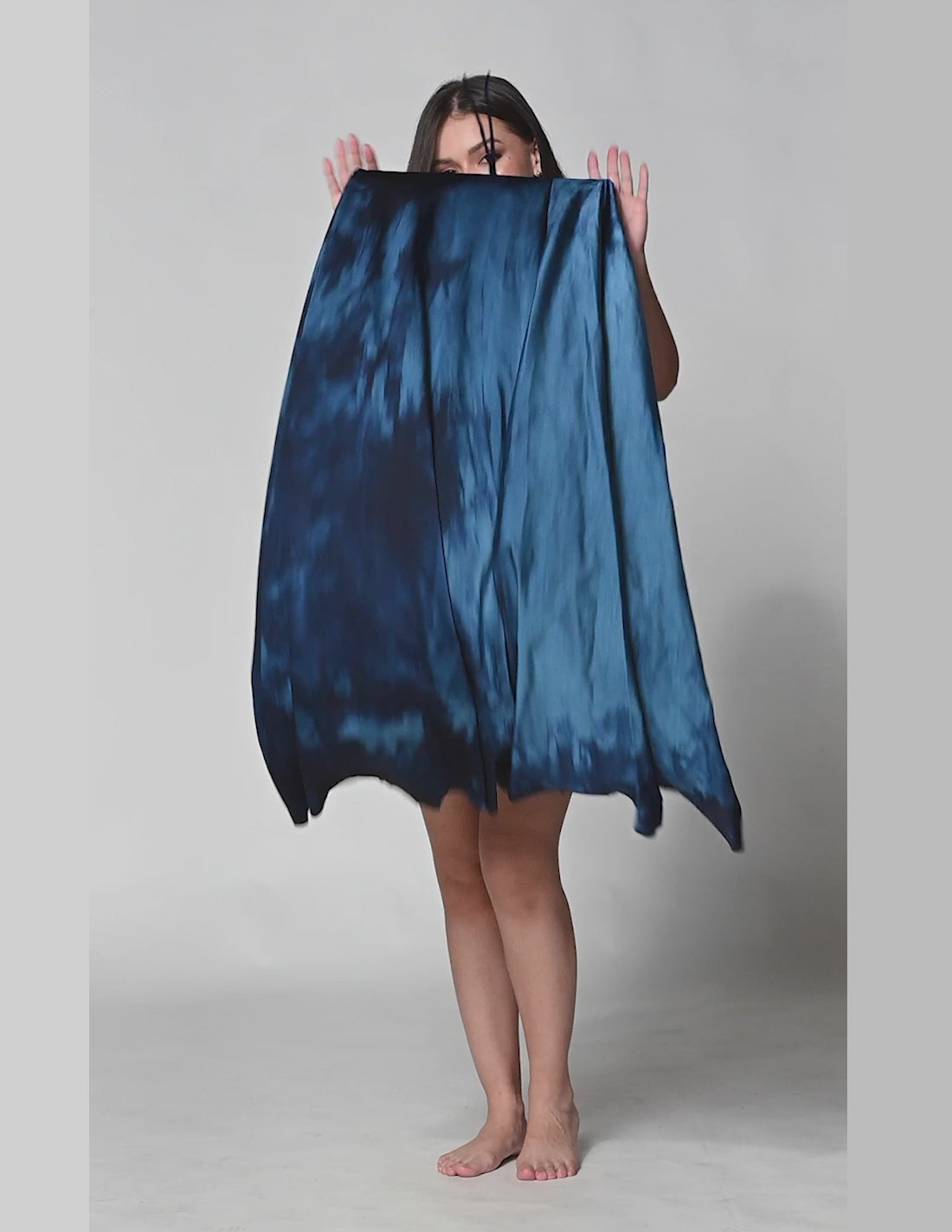 Este outfit está diseñado para resaltar tu estilo con piezas exclusivas hechas a mano. Combina un entero corset con una falda fluida que juntas crean la ilusión de un vestido, perfecto para eventos elegantes o para un look versátil que se adapta a distintas ocasiones. El corset ajusta en cuello y espalda para mayor comodidad, mientras que la falda aporta un movimiento espectacular gracias a su abertura y vuelo. Cada detalle refleja un proceso consciente, reutilizando retazos en la confección del entero y tinturado a mano en tonos Night Blue.