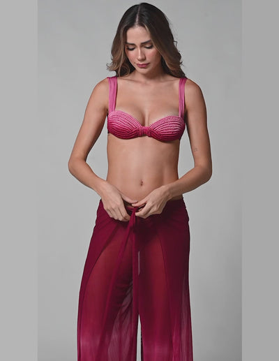 Este outfit combina tres piezas diseñadas para realzar tu silueta con un balance perfecto entre estilo, comodidad y soporte. Ideal para quienes buscan versatilidad y una propuesta fresca con textura y movimiento.