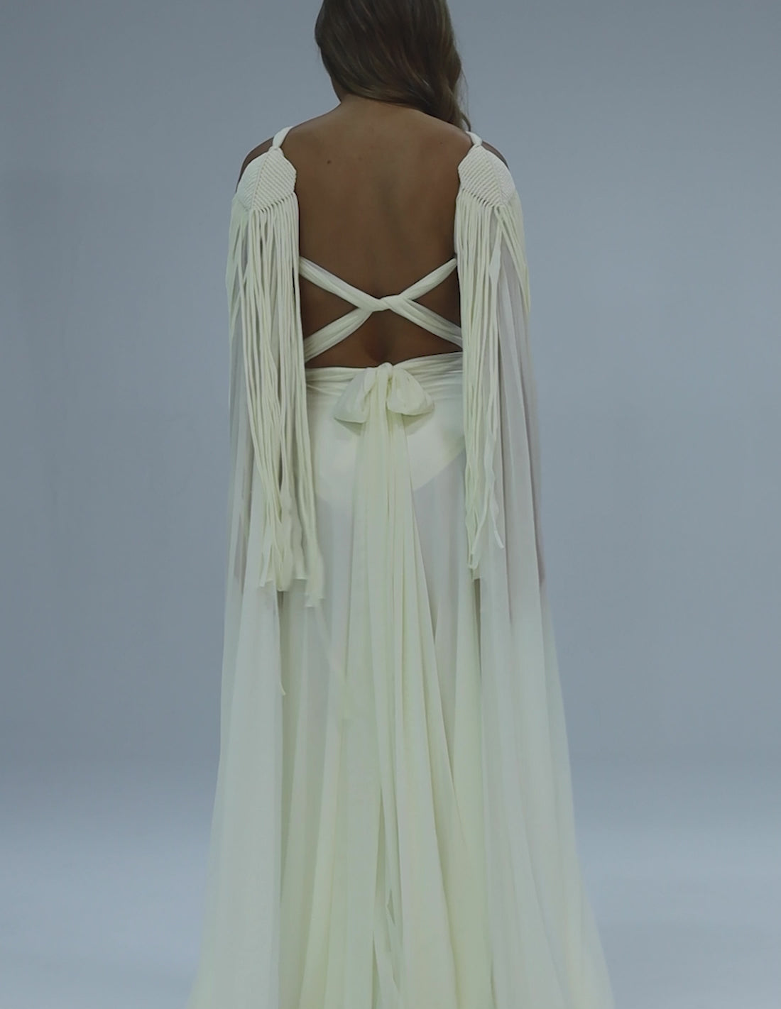 Las hombreras Alas son elegantes y versátiles. Este accesorio de tul y lycra llega hasta el suelo y se puede amarrar a cualquier top. Úsalo con vestidos, crop tops para ocasiones especiales. ¡Si prefieres un toque brillante, elige Ivy Glow! Elaborado con cristales de murano.