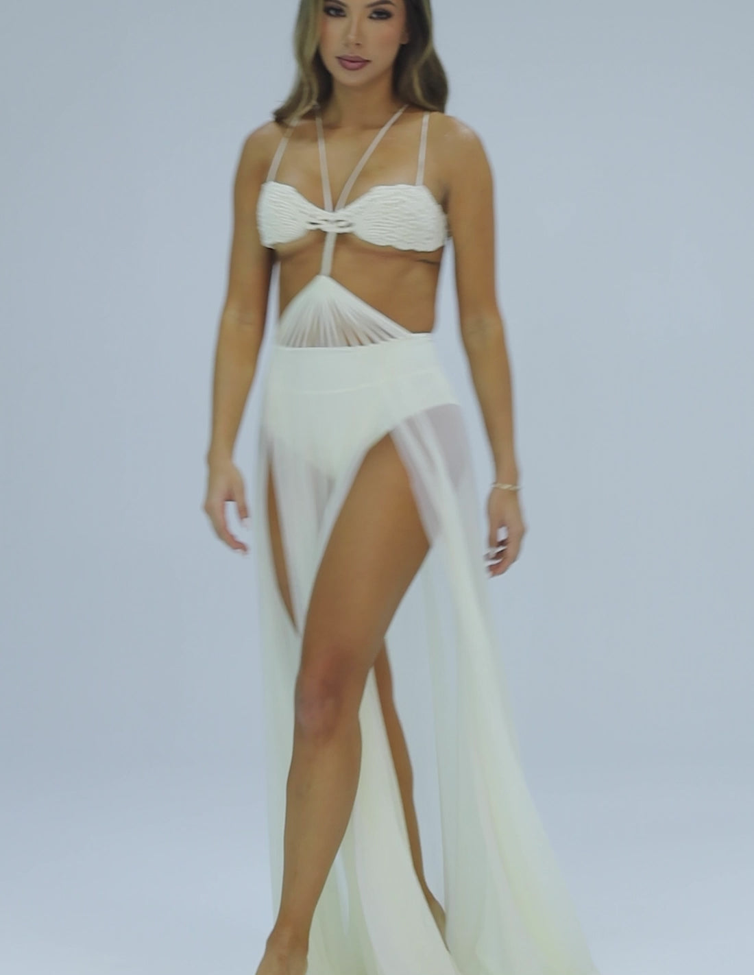 Croptop con falda en tul elaborado 100% a mano por artesanas colombianas, con detalles tejidos en macramé, los cuales representan al ¡Árbol de La Vida! ¡Con su falda de tul, el cual te hará sentir especial y cómoda! Incluye panty con corte americano fijo… ¡Puedes adquirirlo con hombreras removibles o sin hombreras!