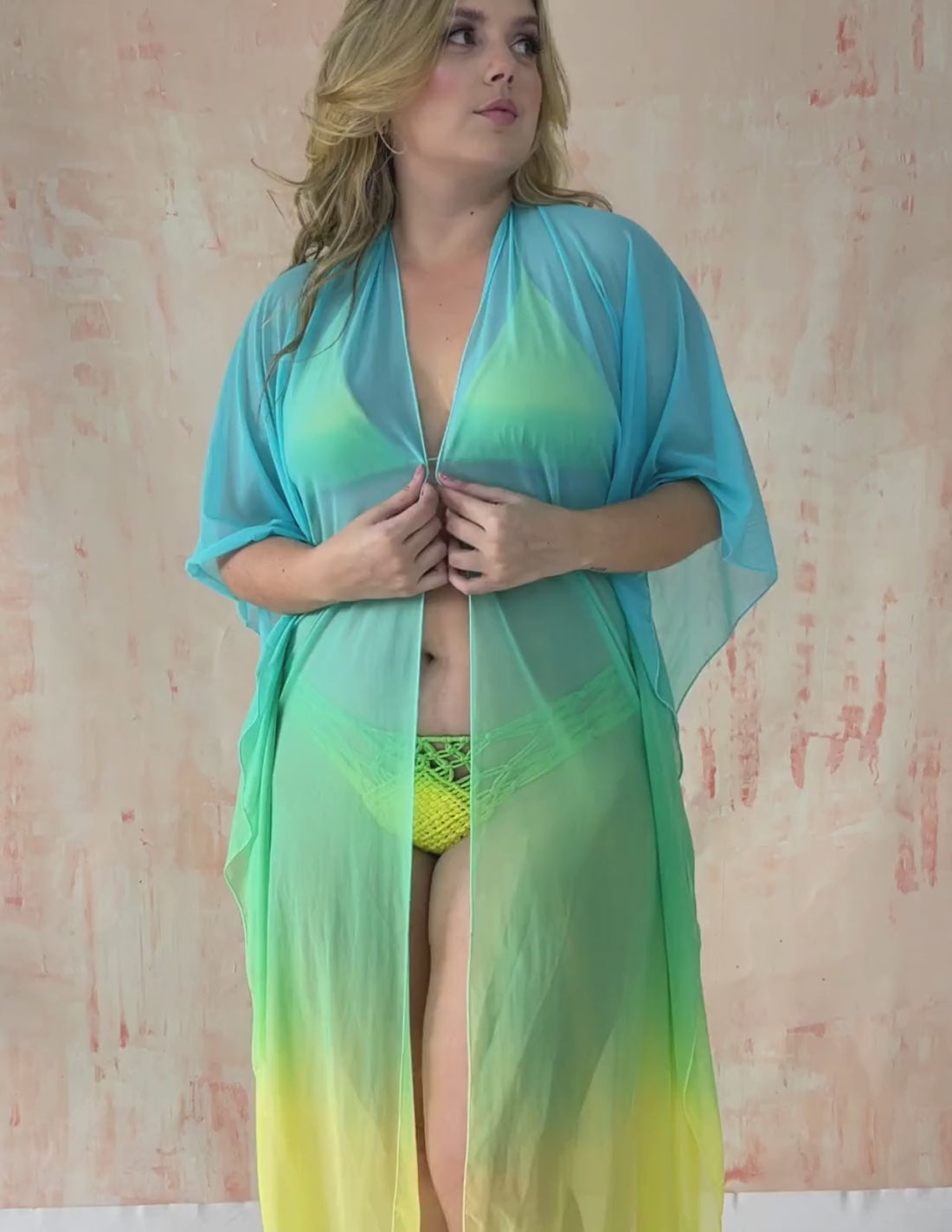 Deja que todo el mundo te admire como si fueras una obra de arte gracias a este kimono, que tiene un teñido único y es perfecto para usar abierto o anudado, y que gracias a su versatilidad, lo puedes usar para complementar tu look exterior, en días de descanso, playa o piscina.