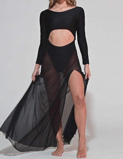 Esta falda tiene unas zetas laterales las cuales de ajustan a el top para que juntas puedan verse como un vestido. La falda en tul es fluida y estilizada, tiene una abertura delantera. Esta prenda sirve específicamente para usar con este look.