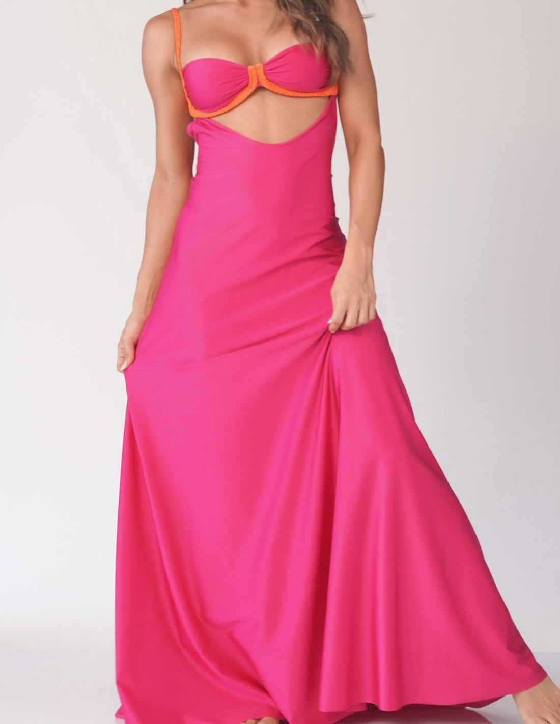 Nuestro vestido Cartagena se adhiere a nuestro top Cartagena al insertar las zetas que lleva el vestido en los pasadores que tiene el top